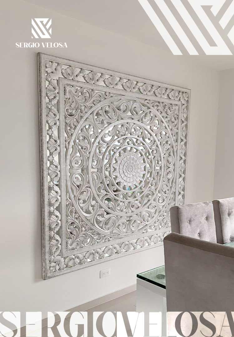 Si buscas una decoración o mueble original y hecho a mano, las mandalas de Sergio Velosa son la mejor opción, cuando fabricamos mandalas las ideas fluyen para decorar y adonar espacios y muebles, desde centros de mesa, combinación con espejos, cuadros hechos con mandalas, mesas de noche y espejos. Todos estos artículo se pueden fabricar con mandalas y de esta manera brindarle personalidad, decoración y diseño a los espacios. Como diseñador y fabricante podemos realizar cualquier estilo de mandala, con diferentes acabados y hechas a mano y a la medida enfocadas al espacio o uso que les vamos a dar.